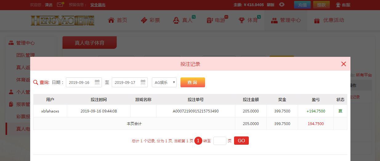 [|赢单奖励] 9月16日恒耀赢194元 |