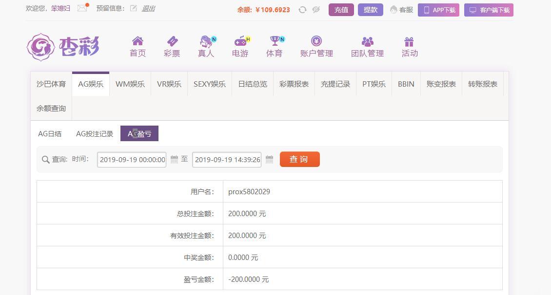 [|输单补偿] 9月19日杏彩平台亏损200元 |