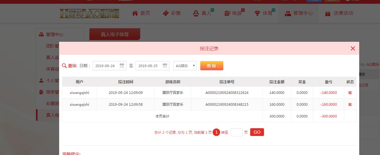 [|输单补偿] 9月24日恒耀亏损300 |