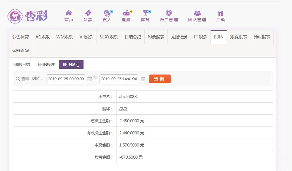 [|输单补偿] 9月25日杏彩亏损880元 |