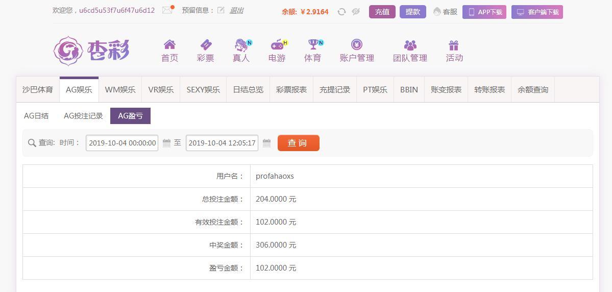 [|赢单奖励] 10月4日杏彩赢102元 |