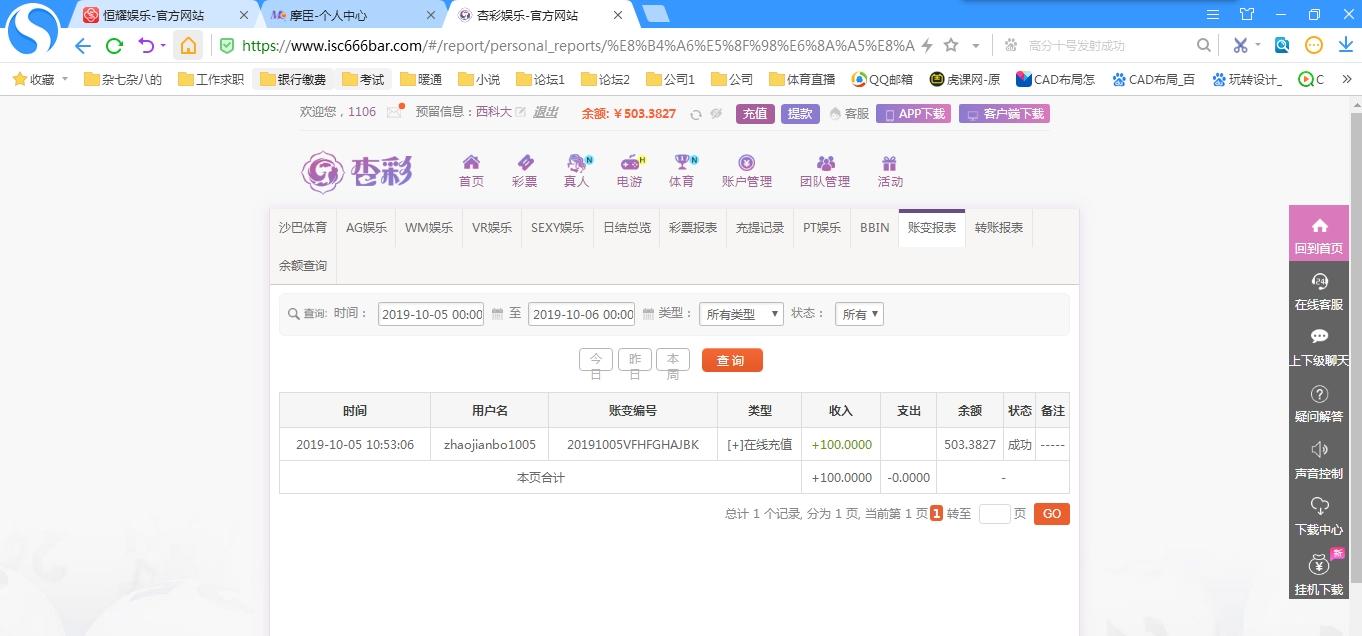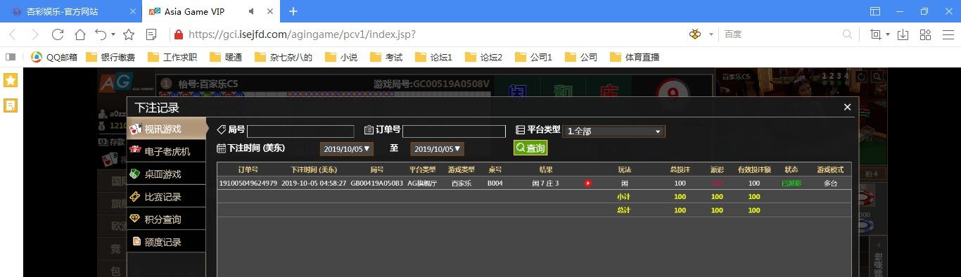 [|赢单奖励] 10月5日 杏彩真人盈利100元 |