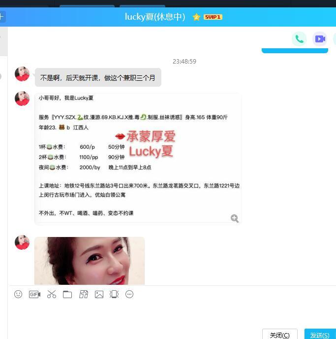 [xinxitop]提示信息[/xinxitop] 【寻欢地址】:闵行 【妹子网名】: Lucky夏 【服务项目】: 【价格一览】:500/p 800/pp 【联系方式】:微信xl2020313 qq2486018208