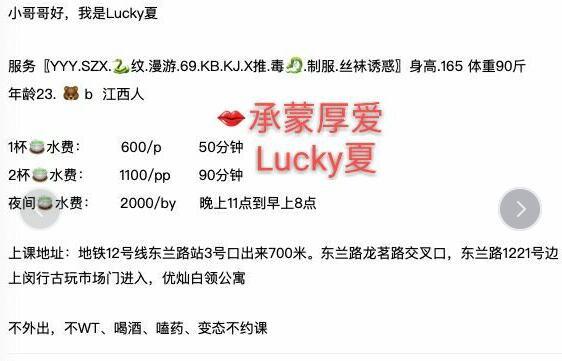 [xinxitop]提示信息[/xinxitop] 【寻欢地址】:闵行 【妹子网名】: Lucky夏 【服务项目】: 【价格一览】:500/p 800/pp 【联系方式】: