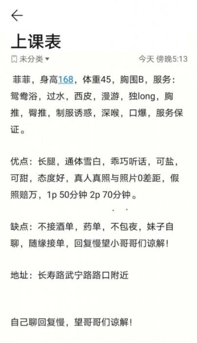 [xinxitop]提示信息[/xinxitop] 为了鼓励会员积极回复验证,只要原帖没聊天截图的,参与验证回复聊天截图都奖励100金币。 【寻欢时间】:2020 【寻欢地点】:武宁路 【信息来源】:论坛 【服务项目】: 【妹妹数量】:1 【环境设备】: 【营业时间】: 【价格一览】:800/p 1500/pp 【安全评估】:评分,满分100。 【服务星级】:★★★ 【重点推荐】:最值得推荐的地方以供参考 【联系方式】: