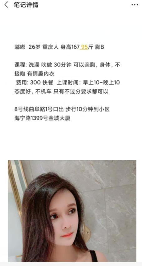 [xinxitop]提示信息[/xinxitop] 【寻欢时间】:2020 【寻欢地点】:海宁路 【楼凤网名】:嘟嘟 【信息来源】:论坛 【服务项目】: 【妹妹数量】:1 【环境设备】: 【营业时间】: 【价格一览】:300/p/30分钟 【安全评估】:评分 【服务星级】:★★★ 【重点推荐】:最值得推荐的地方以供参考 【联系方式】:VX:dudu33458