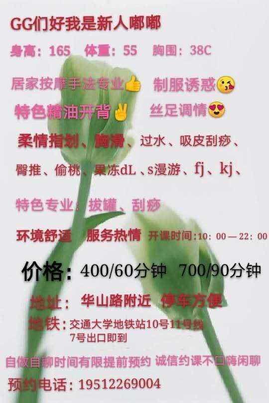 [xinxitop]提示信息[/xinxitop] 为了鼓励会员积极回复验证,只要原帖没聊天截图的,参与验证回复聊天截图都奖励100金币。 【寻欢时间】:2020年08月23日 【寻欢地点】:上海 【信息来源】:妹子推荐 【服务项目】:漫游,胸推,冰火,口活,爱爱 【妹妹数量】:1 【环境设备】:90 【营业时间】: 【价格一览】:400/次 【安全评估】:评分,满分100。 【服务星级】:★★★★★(最高5星)应适当评价质量 【重点推荐】:最值得推荐的地方以供参考 【联系方式】:[unfree]QQ:2095688878 WX:longjingaiyangyang11[/unfree] 【寻欢细节】:今天这个熟女呢,原来是只做正规按摩的,手法没有问题,还会拔罐和刮痧。 妹子属于丰乳肥臀,喜欢肉肉的老铁,可以去尝试。妹子其实有啪,看人的。 【附带照片】: