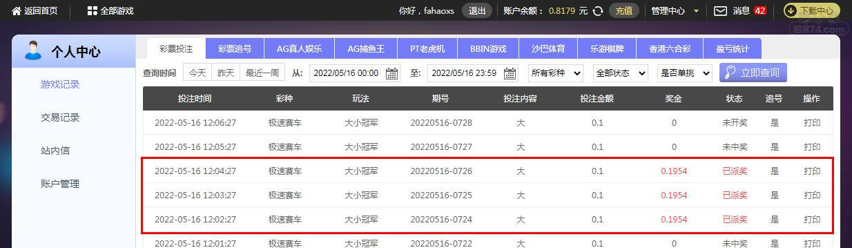追号成功了,还是美滋滋