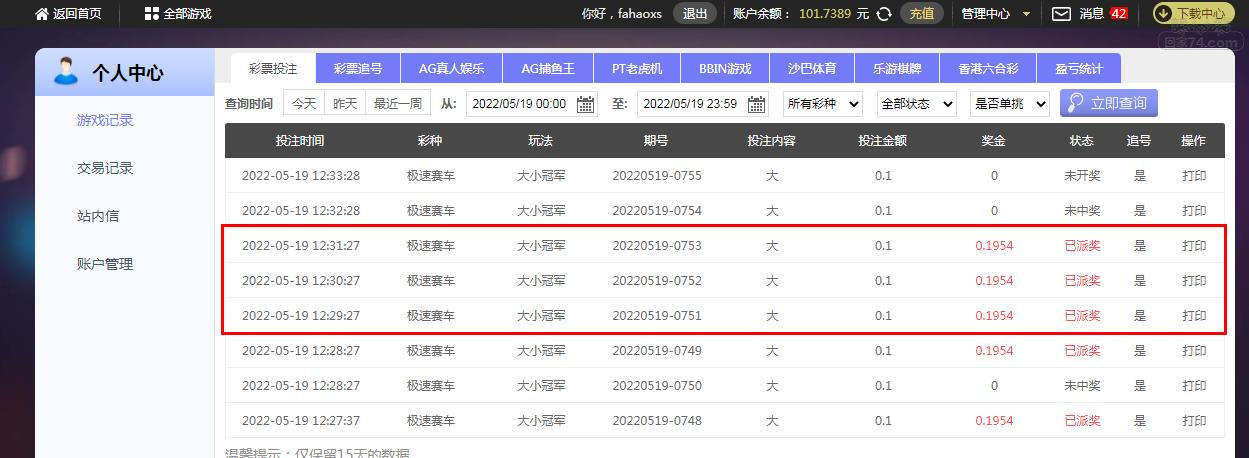 追号成了,还是美滋滋
