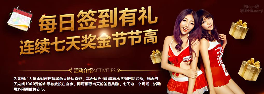 【摩臣娱乐】每日签到有礼,连续七天奖金节节高