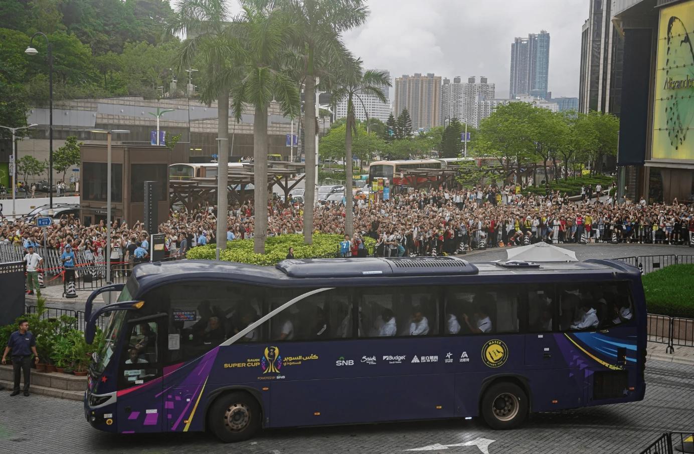 现场图集:利雅得胜利到达香港大球场,众多球迷围观拍照