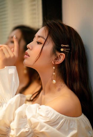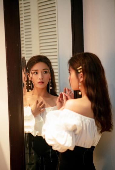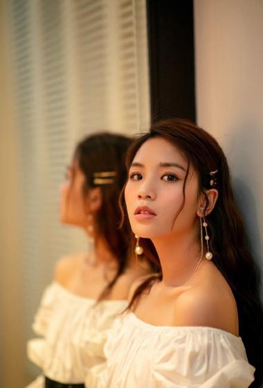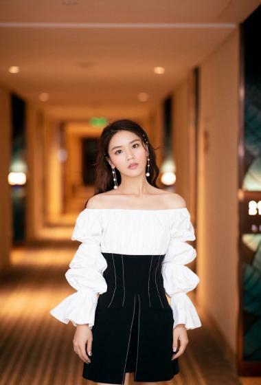 美女黄英酒店走廊里一字露肩上衣优雅灵动【10P】