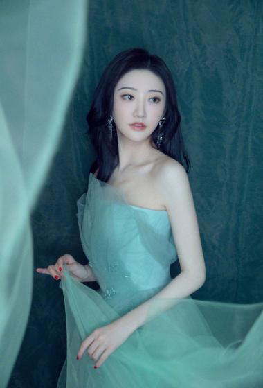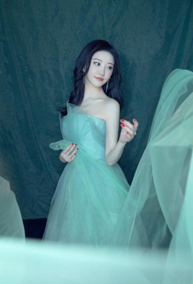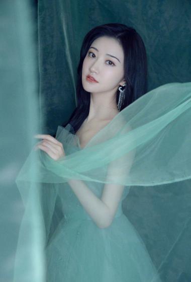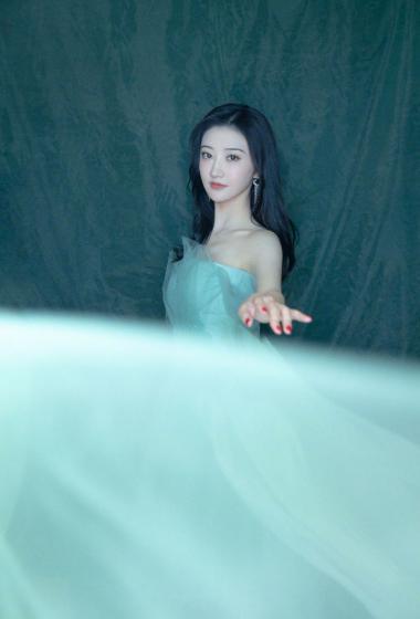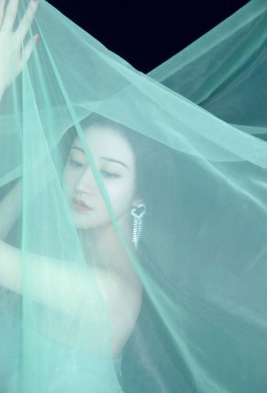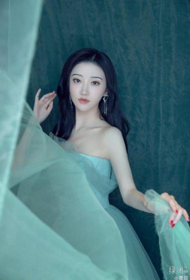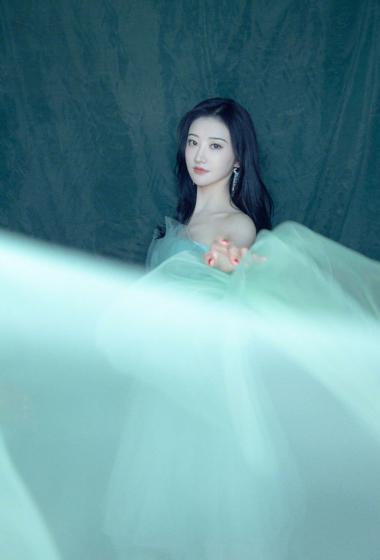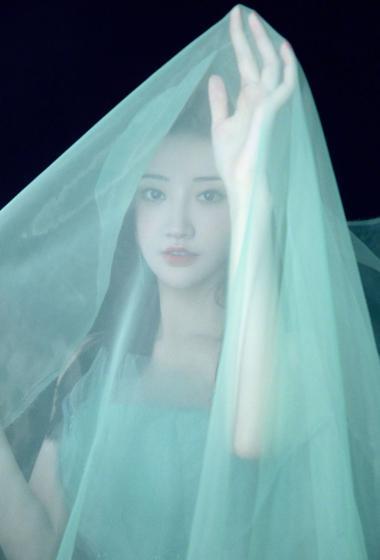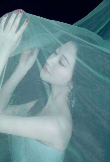 美女景甜长发披肩蓝色薄纱长裙朦胧性感仙气十足【10P】