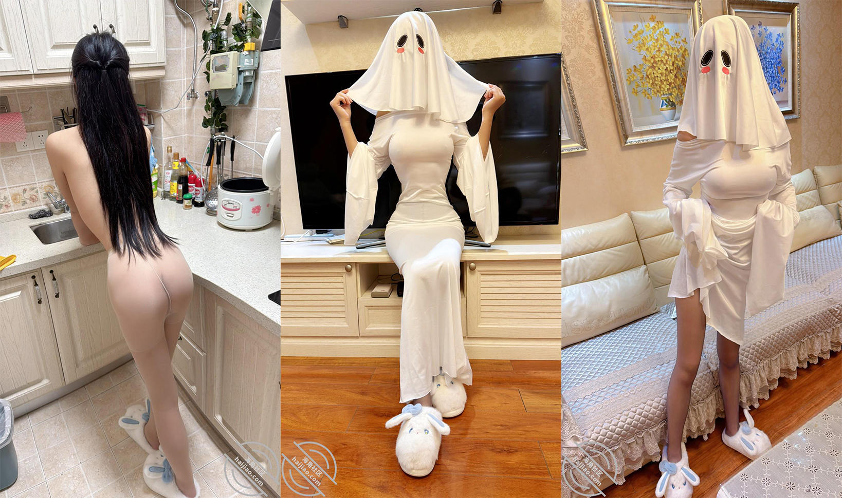 [国内自拍] 海角社區綠帽大神【寢取NTR(會噴水的親姐姐)】萬聖節夜老婆扮幽靈娘主動求操,找個大屌單男猛操出水量驚人 |