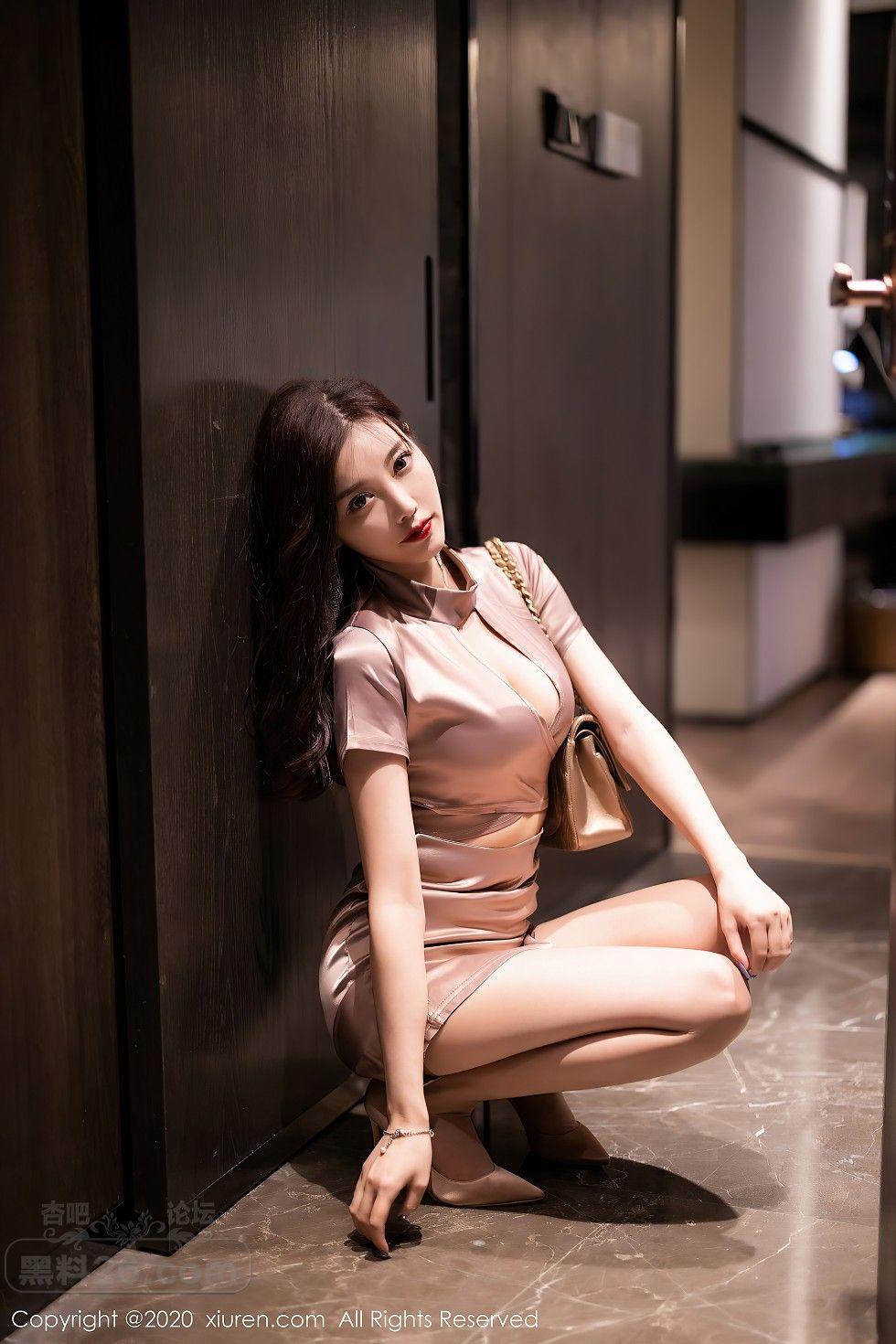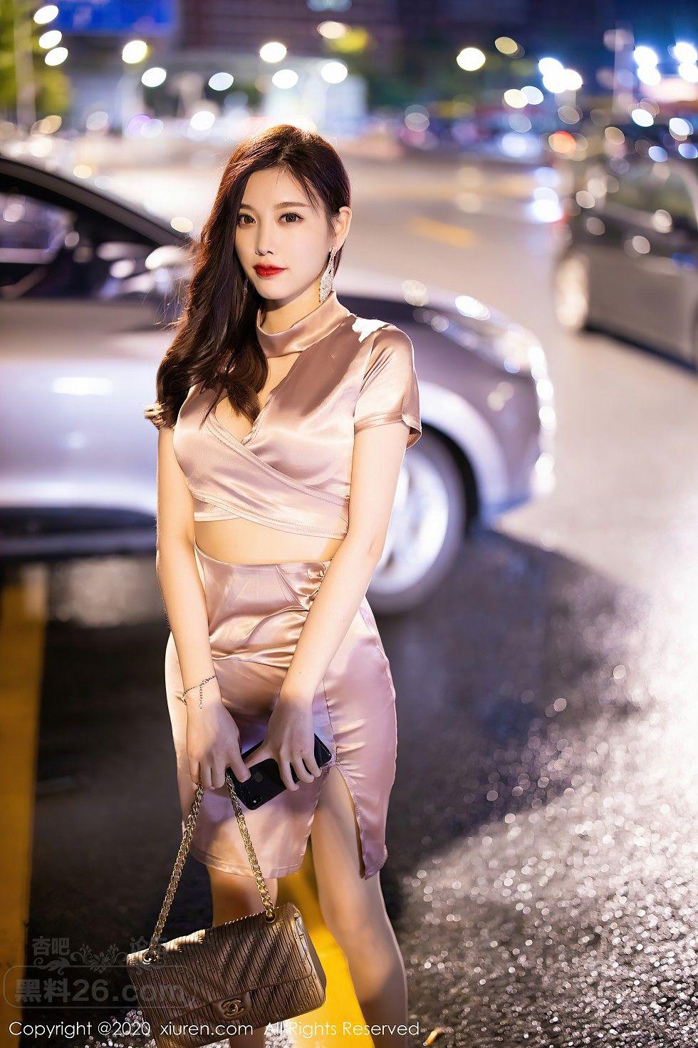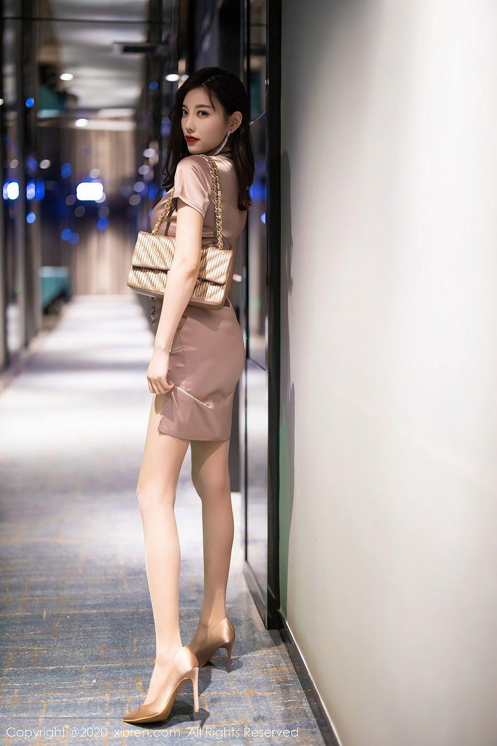 [美腿翘臀] 女神杨晨晨sugar香槟色吊裙半撩露超薄肉丝裤袜秀翘臀诱惑写真【50P】 |