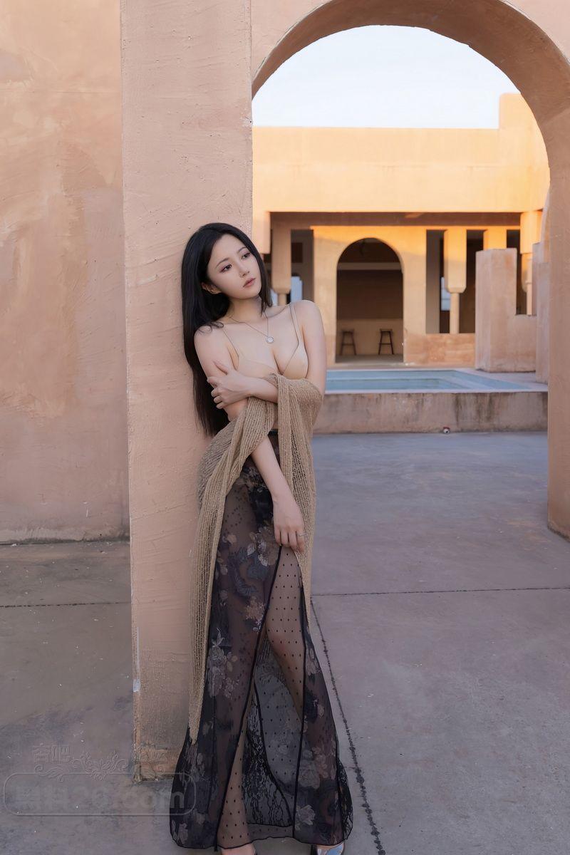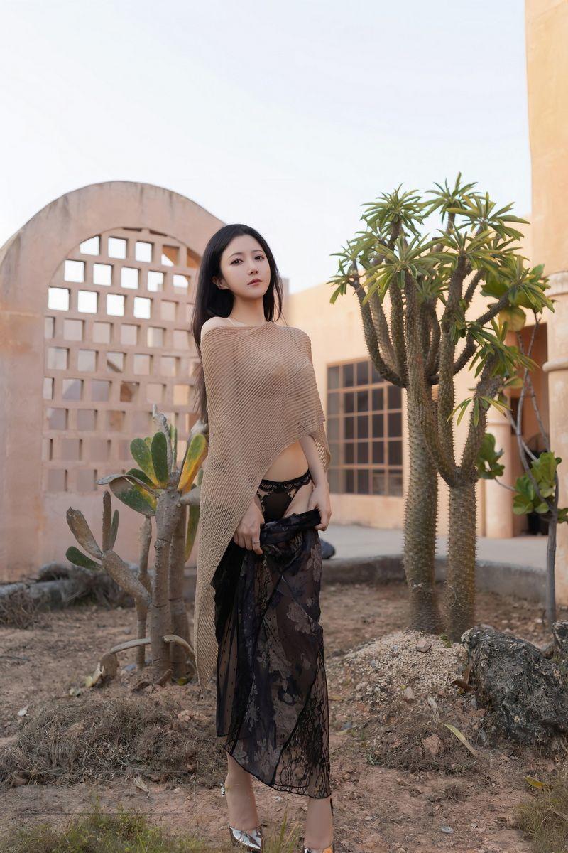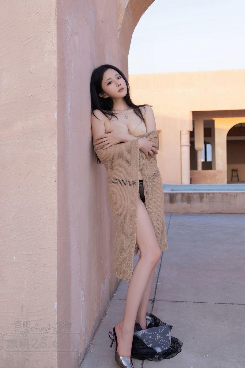 年轻嫩模鱼子酱薄纱披肩黑色蕾丝内裤赤裸上身奶子饱满【20P】