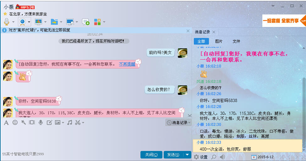 【寻欢日期】:2015年6月10号 【详细介绍】:今天无事可做,上QQ找妹子,这个妹子加的时间不长,但是评价不错,于是电话预约,谈价,看看时间差不多了杀到目的地,遥控上楼。妹妹开门,一看,和照片上的一样,是一个人,但是照片是艺术照,差距还是有的。屋里较黑窗帘全拉上了,理解。妹妹很热情,问要不要水,我自带了,就不要了。妹妹说洗澡吧,我看看浴室很小,就没要陪浴,洗洗涮涮出来,上床平躺,妹妹shetou头来一遍,然后DL,,不得不说,妹妹的舌头挺厉害的。然后开始KJ,来了2-3分钟,受不了,穿雨衣开始,一边干一边听听妹妹的淫词浪语,爽翻了,妹妹腿长架在肩上查的那叫爽,一下射出,舒服。真想来第二次,无奈下午上班,只好下回了。总体来说妹妹不错,400大洋也值,至于服务仁者见仁智者见智
