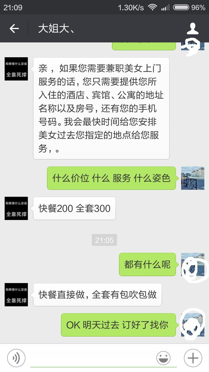 【寻欢地点】:龙岩市内 【信息来源】:亲身经历 【服务项目】:制服、全套 【妹妹数量】:数量不详,根据你个人喜欢选 【环境设备】:自己找地方 【营业时间】:时间自己定 【价格一览】:看套藏而定(最低300) 【安全评估】:没抓到就是安全 【服务星级】:服务还可以 【寻欢细节】:微信上找的,直接发地点和时间就OK 【联系方式】: