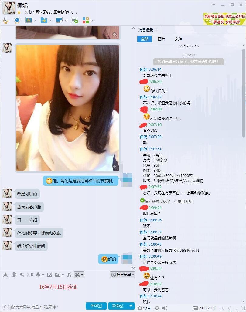 【寻欢细节】: 前几天有空休息,饱暖思淫欲,不开荤怎么行?!早早在论坛看到佩妮的广告,虽然照片上是艺术照,不过感觉应该样貌不会差太多,最主要是便宜,500两次(之前是400的,发现升价了 )泻火可以了,身材一般按挑剔的眼光通俗的话来说应该算是美女一个,不过个人眼光觉得不算太胖,胸够大! —————————————————————————————————————— 早早来到了附近,Q上约好了,打电话过去,说有空,于是马上坐地铁去到了团一大,出了地铁口轻车熟路转左走,因为之前去过玉儿那里,没记错应该也是在附近,于是打电话,然后告诉我 转右猜对,于是我又倒回去一路遥控,到了之后发现...MB,转左转右都一样,耍我啊!!!!走得我一身汗! 上楼之后发现佩妮或者说娜姐上身就穿着一件蓝色还是紫色的蕾丝情趣小挂衫,蕾丝围裙的档住下半身,样貌看上去还可以,有点居家少妇的感觉,戴着眼镜,就是身材多少有点走形了,房 子有点简陋,太暗,只开了一盏很小的灯,房子不大,一张床,两个柜子还有一台冰箱,佩妮看我一身汗,叫我脱了衣服先洗澡,顺带叫我给钱,掏出500,脱了衣服就进去洗澡了,帮我洗了 小DD后其他我自己洗的,她说她洗了,好吧,自己洗咯,洗完出来擦干身体趟在床上,然后佩妮就把挂衫褪到腰上,露出那硕大的胸部,两手一抓,握不住,太大了,奶头跟尾指头一样大, 突了出来,不断搓动,爽!然后佩妮帮我吹,慢慢的从奶头一路舔下来,到了DD处不断舔周围,然后一口含住,温柔的摇了几下,吹功还算可以,起码挺爽的,看着佩妮伏下来的身体,手趁 机不断游走,抓住奶头捻了几下,然后摸了摸屁股,这时候才发现佩妮穿了肉色的开裆丝袜,手就不老实的摸去佩妮的妹妹那里,还没到就摸到了湿湿的感觉,摸过去才摸到已经流水了,摸 了一下可能她受不了了叫我先做一次,于是戴套开干,对准洞口,啪的一声,整根没入,因为水多,声音挺响的。 做的过程中佩妮不断说“干我,用力干我”,想不到挺骚的,于是加快速度,换了几个姿势,大概做了十几分钟就缴械了,这时候摸了一下她的大腿,感觉都是汗,丝袜有点湿湿的感觉。 聊了一下天,佩妮跟我说她有正职,做这个只是兼职,电话也响了几次,不过没接,做完第一次才接的电话。那我直接Q上预约想不到直接约到了,有点庆幸。 第二次开干,先女上位,水声啪啪啪的响,能看到进进出出的过程,不过可能胖,没两分钟叫我上来,传教士几分钟后发现可能她的韧带不是拉得很开,腿有点挡住我的进攻,于是叫佩妮趟 在床角上,我站在地上,这个姿势好出力,干了大概三十多分钟,她满身大汗问我能不能做出来,我说不一定,反正有感觉,她说她都高潮过一次了,于是又一番进攻,还是没出来,她说受 不了,我说那帮我打出来吧,打了大概十分钟,说手都酸了,我说那不打了吧,反正我感觉要是做的话,一个小时最少的(此处不是自吹自夸,个人感觉难出货应该算病,试过包夜把一个小 妹干到跑路,一个多小时还没出来...真不是吹,) 反正也差不多了,洗澡出来就滚蛋了 ++++++++++++++++++++++++++++++++++++++++++++++++++++++++++++ 体验后感,佩妮样貌还可以,居家少妇型,不过确实身材走样,偷拍了几张,服务态度好,就是内容少,洗吹做,不过想想价格也差不多吧! 总结:泻火可以随便玩,样貌不算差,身材喜欢胸大臀翘腰细那种就不用考虑了,像我这样的熟女控不可多得的好选择!服务值得,价钱实惠,非枪手,嘴下留情!莫怪! 【附带照片】: