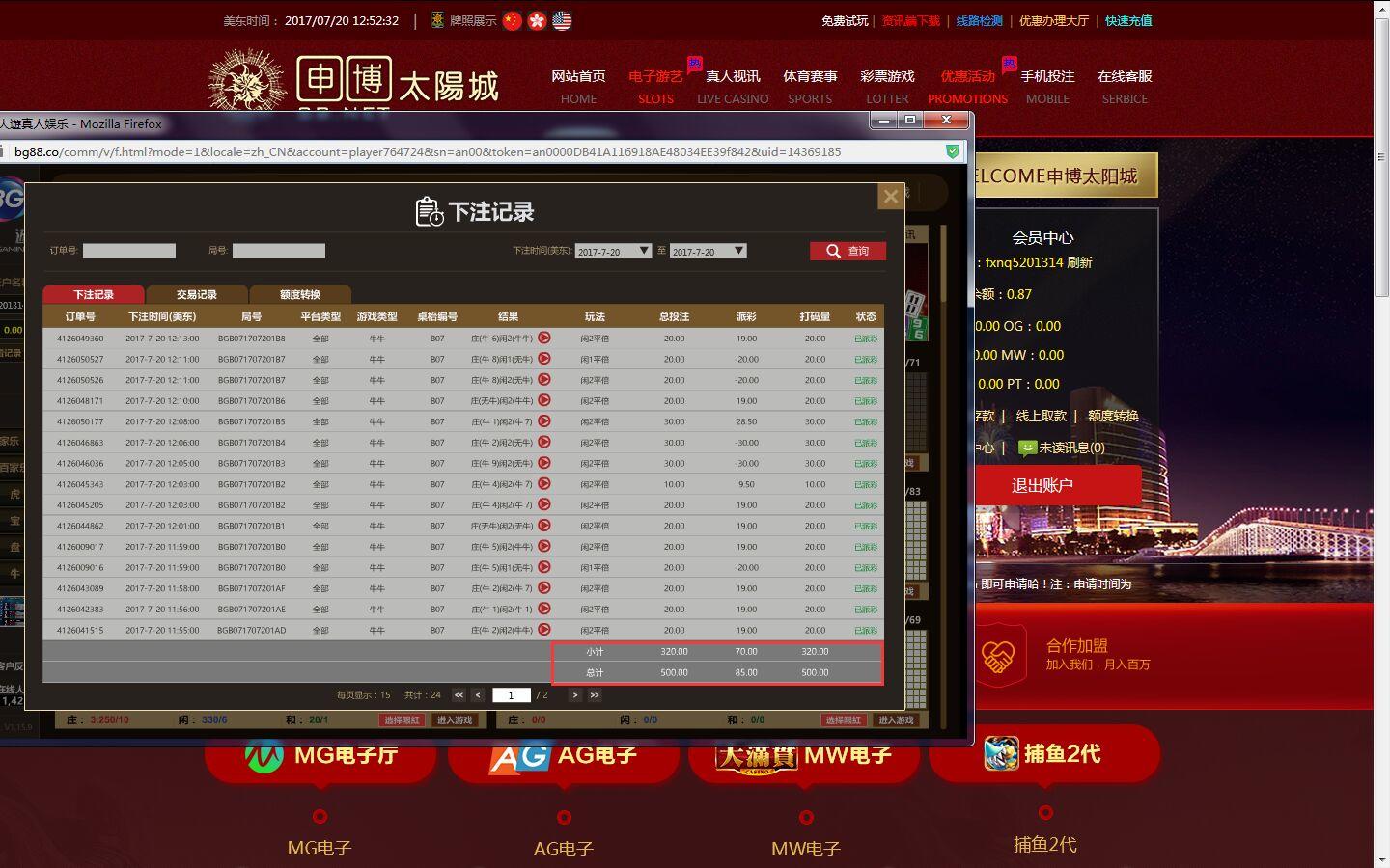 [|赢单奖励] 7月21日申博BG平台赢利87元 |