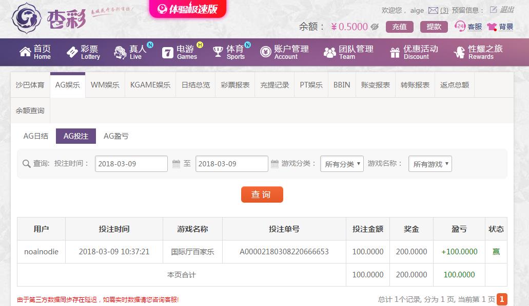 [|赢单奖励] 03.09杏彩百家乐赢100 |