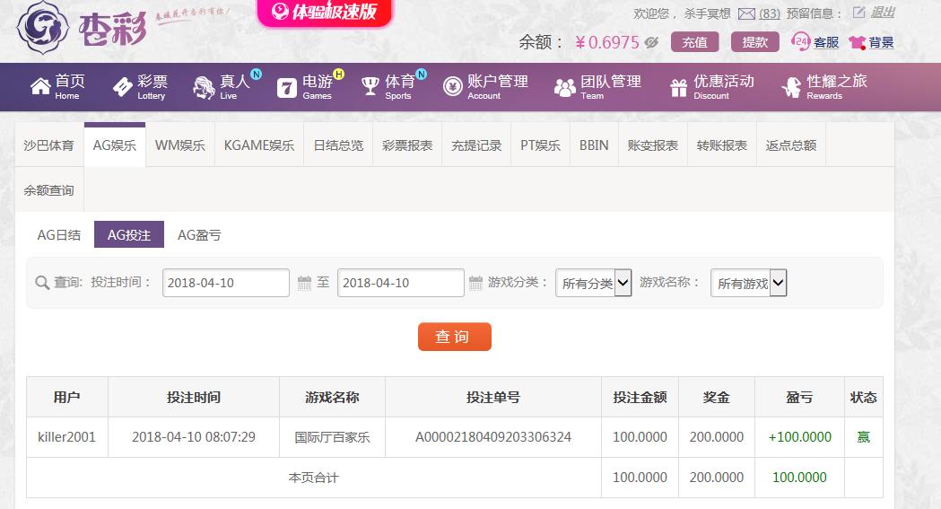 [|赢单奖励] 4月10日杏彩盈利100 |