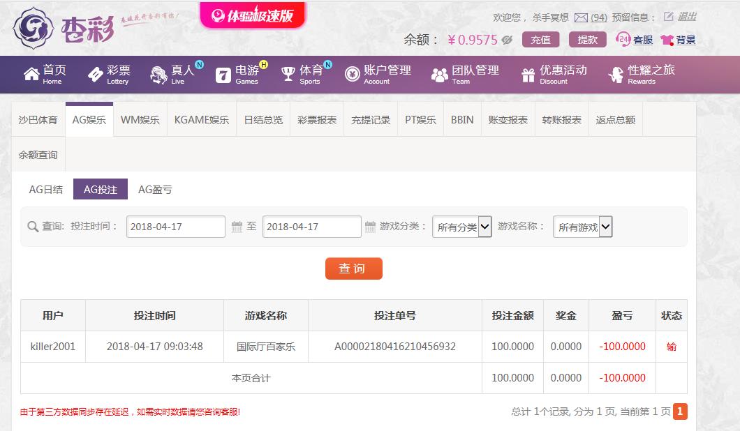 4月17日 杏彩投注输100元