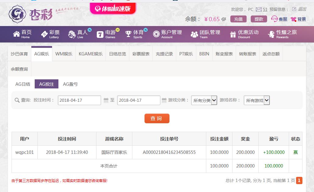 [|赢单奖励] 4月17日杏彩盈利100 |