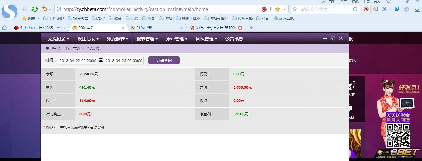 [|输单补偿] 4月22日众赢输72 |