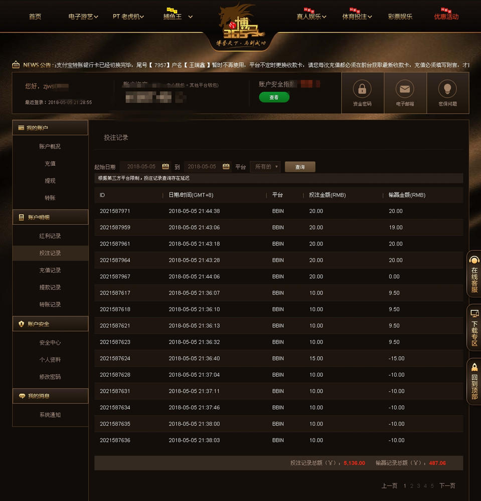 [|赢单奖励] 5月5日博马赢利487 |