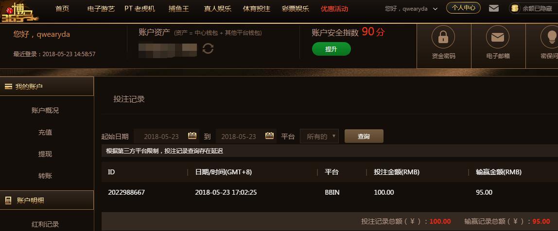 [|赢单奖励] 5月23日博马波音盈利100元 |