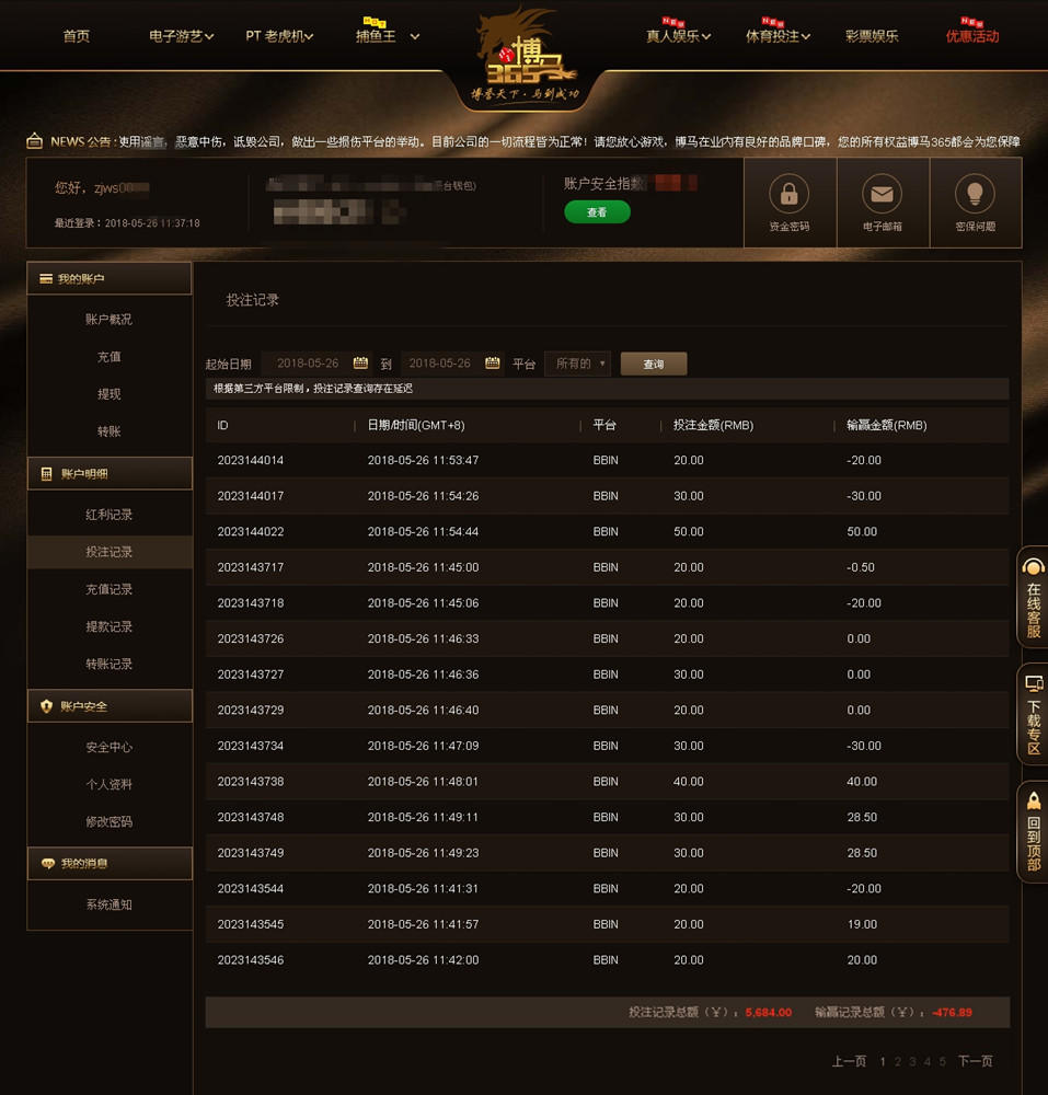 [|输单补偿] 5月26日博马亏损477 |