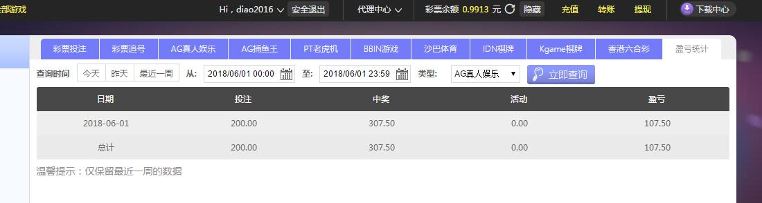 [|赢单奖励] 6月1日摩臣AG盈利107元 |