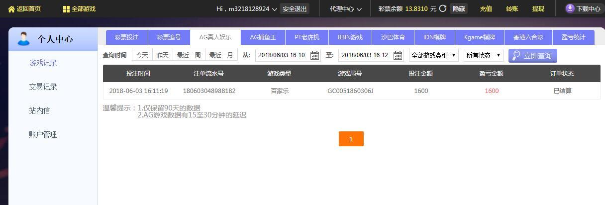 [|赢单奖励] 6-3 摩臣ag平台赢1600 |