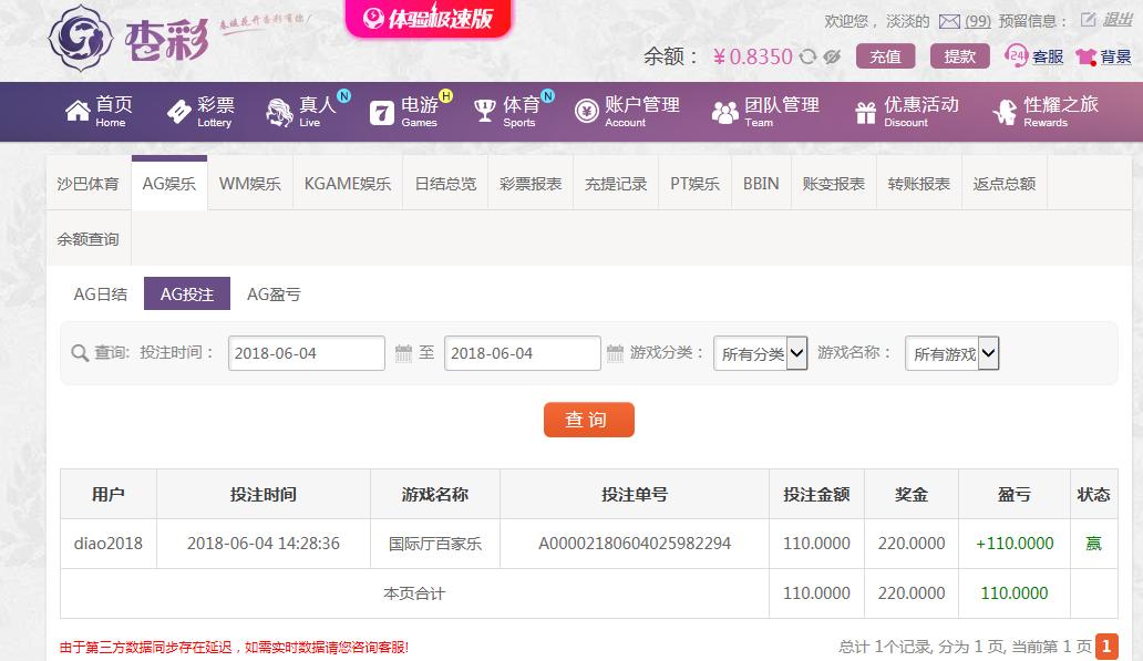 [|赢单奖励] 6.4杏彩 赢利110 |