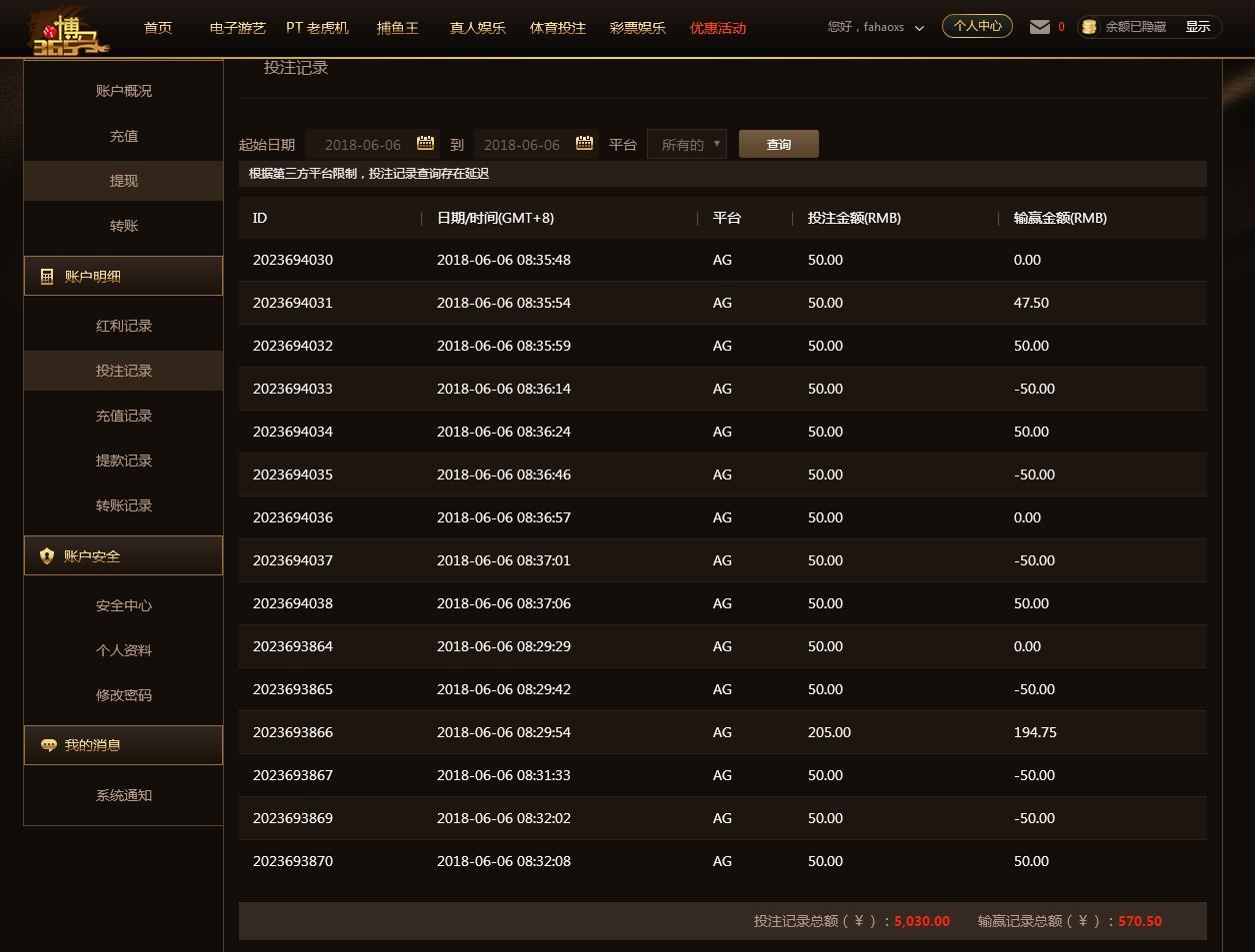 [|赢单奖励] 6月6日博马AG赢利570 |