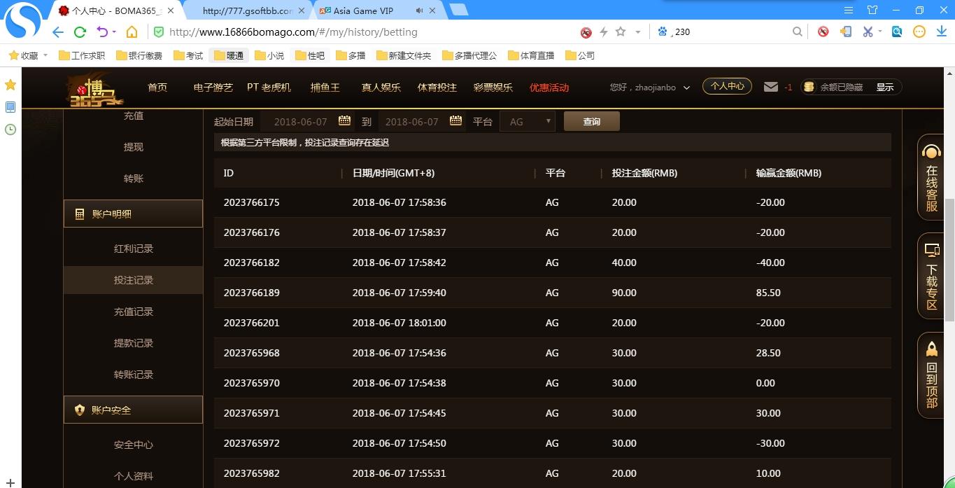 [|输单补偿] 6.07博马AG百家乐亏损5354 |