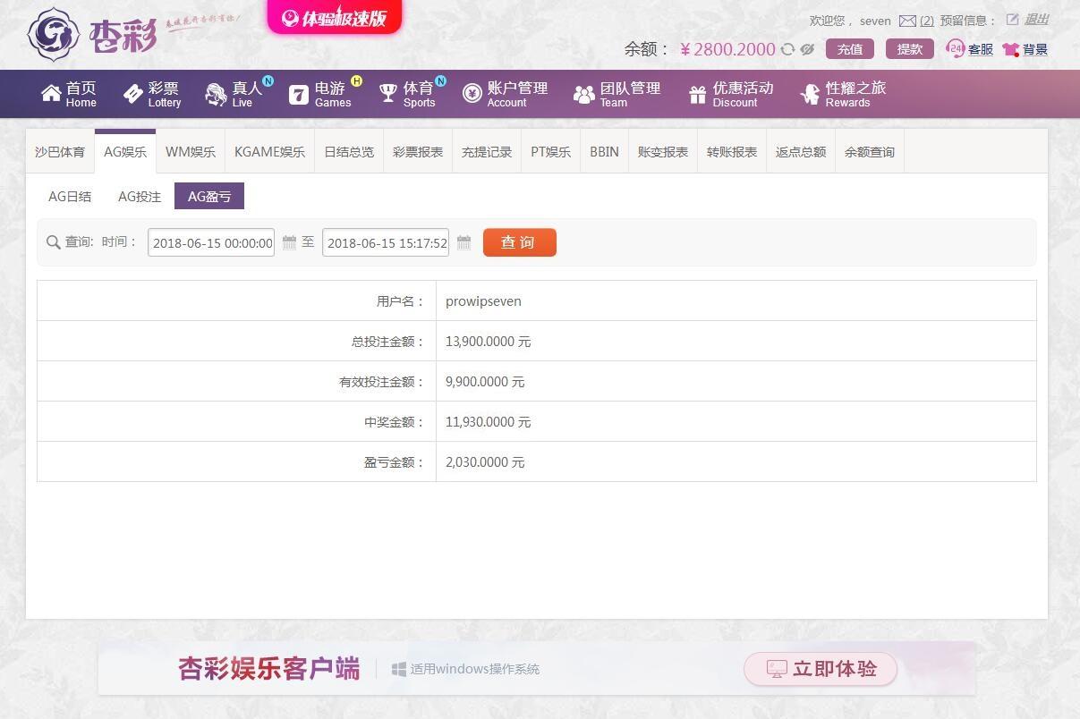 [|赢单奖励] 6月15日杏彩盈利2030 |