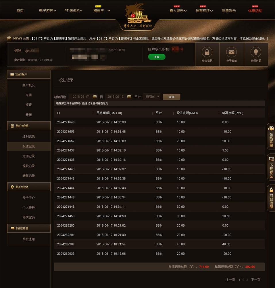 [|赢单奖励] 6月17日博马赢利100 |