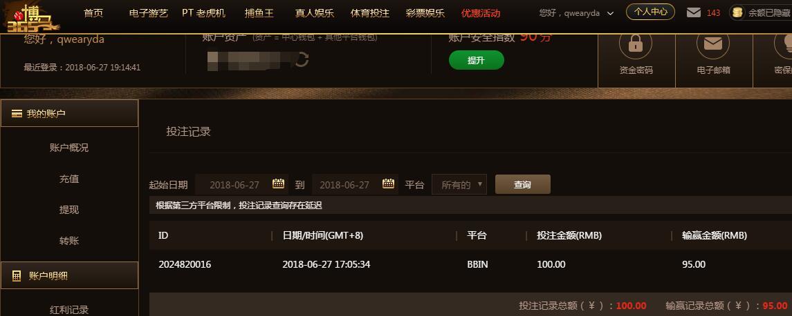 [|赢单奖励] 6月27日博马盈利100元 |