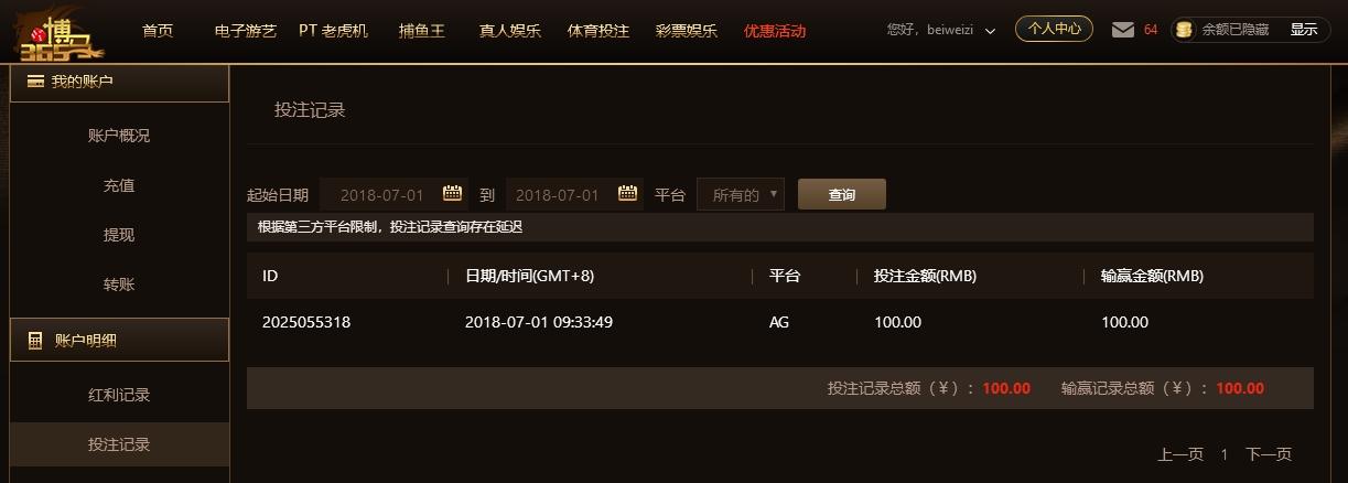 [|赢单奖励] 7月1日博马AG赢利100 |