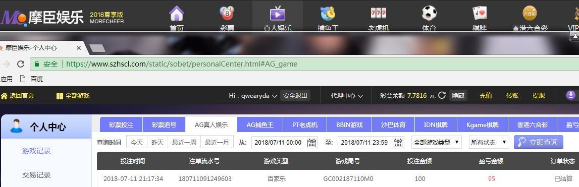 [|赢单奖励] 7月11日摩臣盈利100元 |